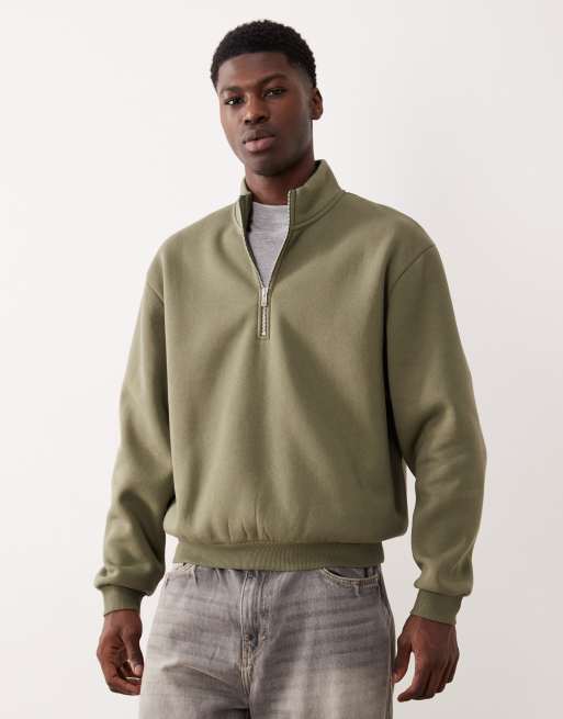 ASOS DESIGN - Essentials - Ruimvallend sweatshirt met standaard pasvorm, en kwart rits in olijfgroen