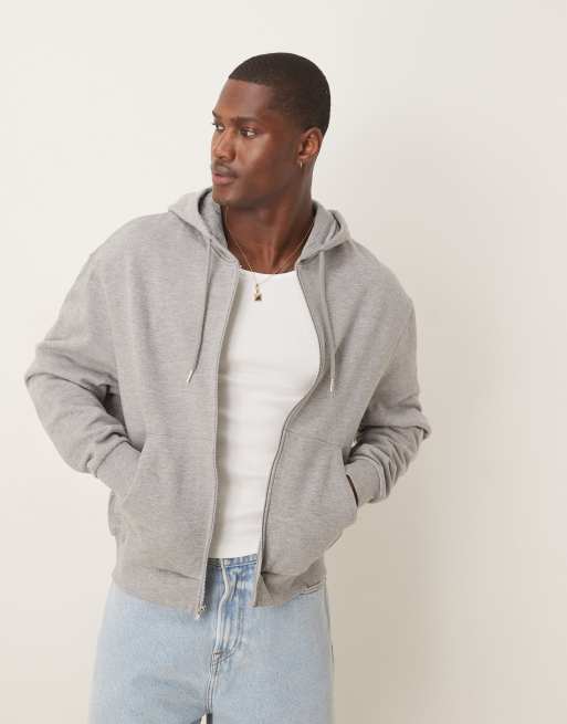 ASOS DESIGN - Essentials - Ruimvallende rechte hoodie met ritssluiting in gemêleerd grijs