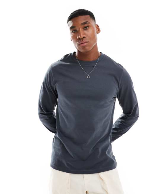 ASOS DESIGN - Essentials - T-shirt met lange mouwen en ronde hals in antraciet