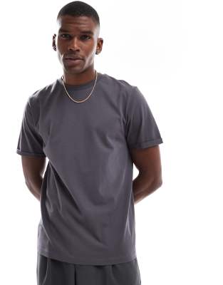 ASOS DESIGN - Essentials - T-shirt met ronde hals en omgeslagen mouwen in antracietgrijs