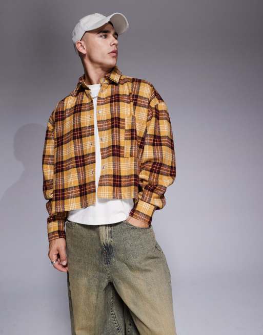 ASOS DESIGN - Extreem oversized cropped geruit shacket van zware stof in mosterdgeel