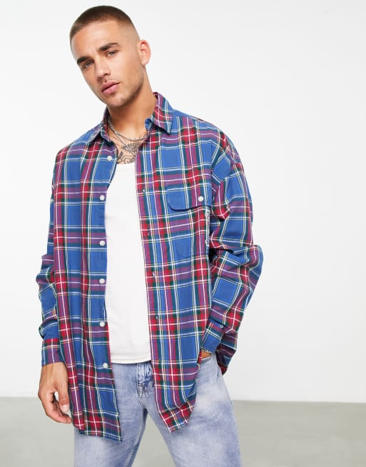 ASOS DESIGN - Extreem oversized overhemd met lange mouwen, ruiten in college-stijl en geborduurde stadsnaam