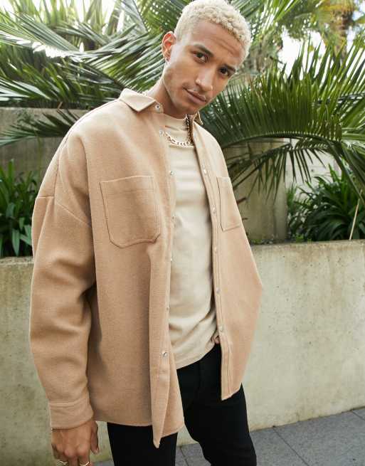 ASOS DESIGN - Extreem oversized overhemd van wol mix in kameelbruin