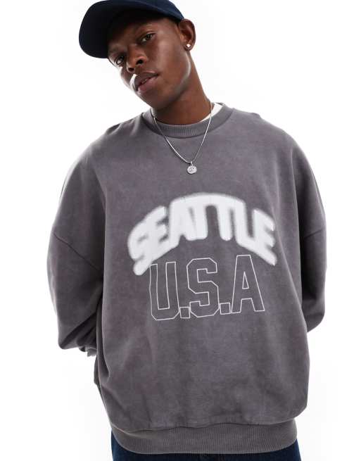 ASOS DESIGN - Extreem oversized sweatshirt met stadsprint in grijs met wassing