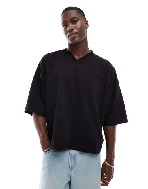 ASOS DESIGN - Extreem oversized T-shirt van zware stof met siernaden en V-hals in zwart