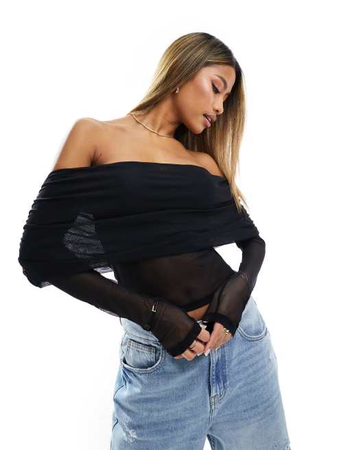 ASOS DESIGN - Extreme bardottop van mesh in zwart