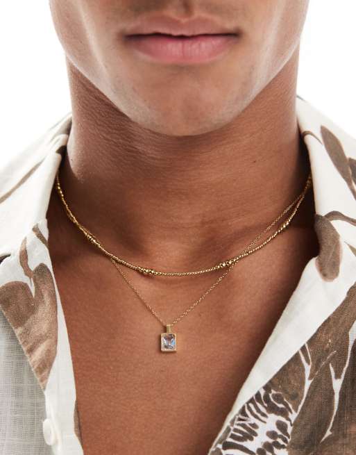 ASOS DESIGN - Festival - Roestvrij stalen kralen, set van 2 kettingen met kristal in goud