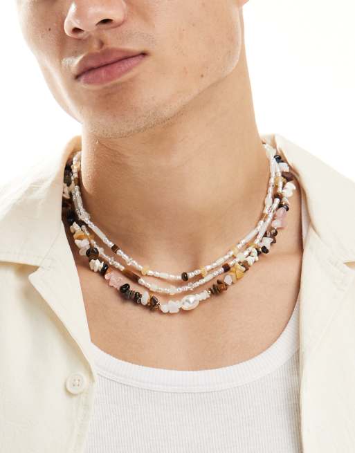 ASOS DESIGN - Festival - Set van 3 kralenketting met halfedelstenen in multi