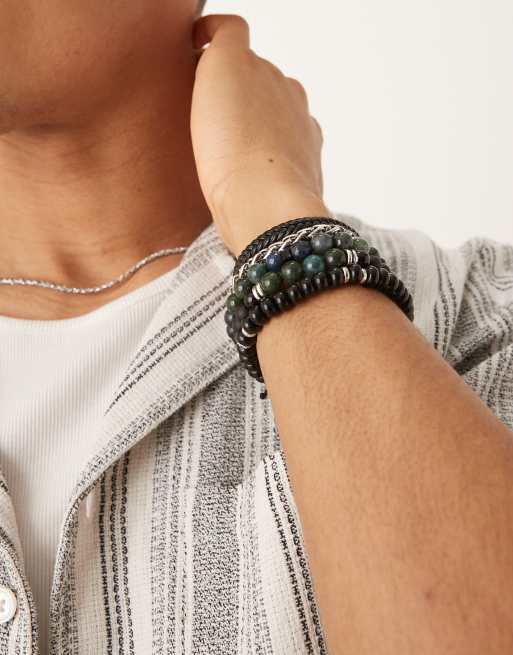 ASOS DESIGN - Festival - Set van 5 kralenarmbanden met stof in zwart