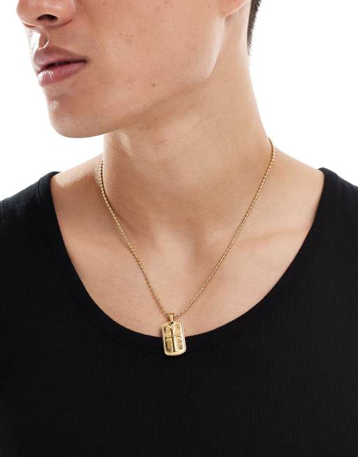 ASOS DESIGN - Festival - Waterdichte roestvrijstalen ketting met identiteitsplaatje met kruis in goud