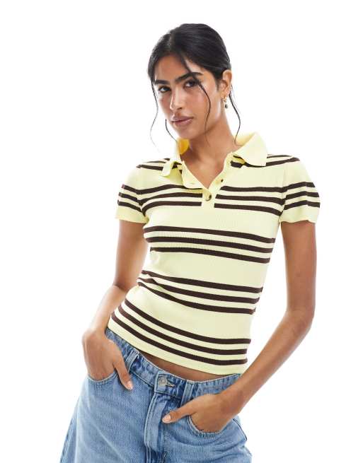 ASOS DESIGN - Fijngebreide rugbytop met korte mouwen en strepen in geel