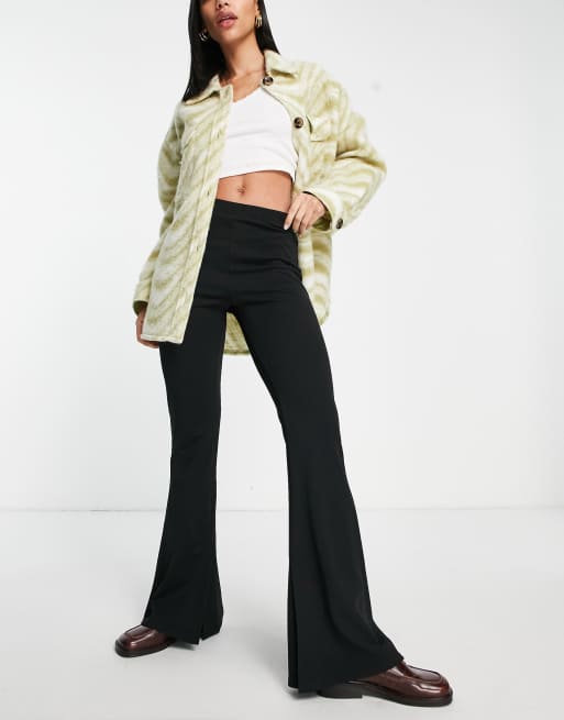 ASOS DESIGN - Flare-broek van crêpestof met splitten aan de zijkant in zwart