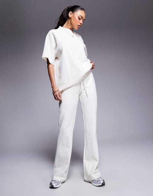 ASOS DESIGN - Flare-joggingbroek met interlock-naden in kokosmelk, deel van co-ord set