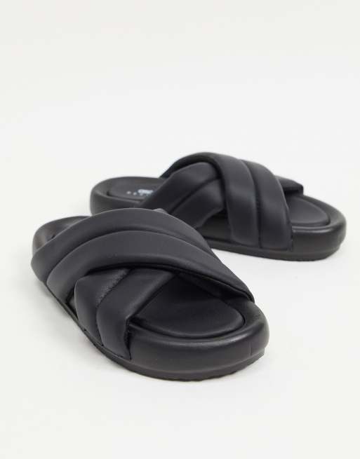 ASOS DESIGN - Flight - Gewatteerde slippers met gekruiste band in zwart