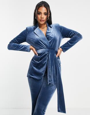 ASOS DESIGN - Fluwelen colbert met obi-taille in blauw