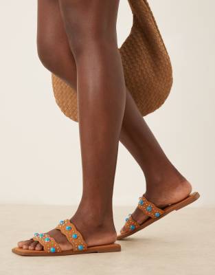 ASOS DESIGN - Found - Platte muiltjes met steentjes in lichtbruin