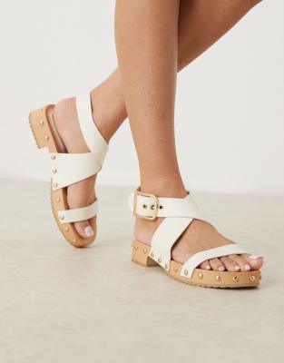 ASOS DESIGN - Fran - Klompsandalen met gekruiste banden in gebroken wit