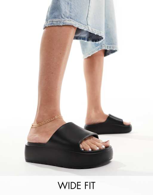ASOS DESIGN - Freedom - Slippers met brede pasvorm en plateauzool met profiel in zwart