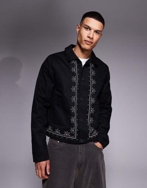 ASOS DESIGN - Geborduurd Harrington jack in zwart