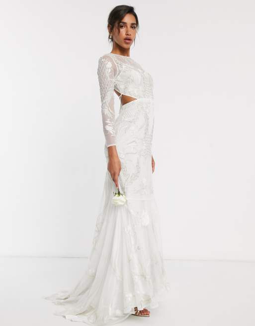 ASOS DESIGN - Geborduurde trouwjurk met versiering en fishtail in wit