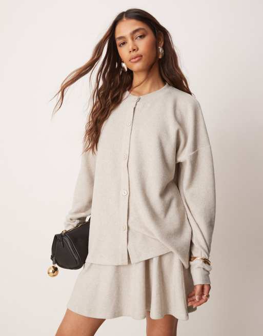 ASOS DESIGN - Geborsteld vest met lange pasvorm in crème, deel van co-ord set