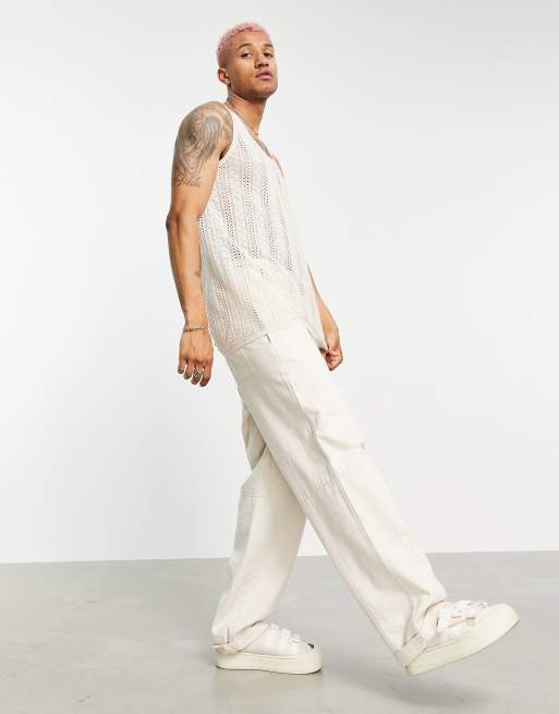 ASOS DESIGN - Gebreid hemd met pointelle steken in beige.
