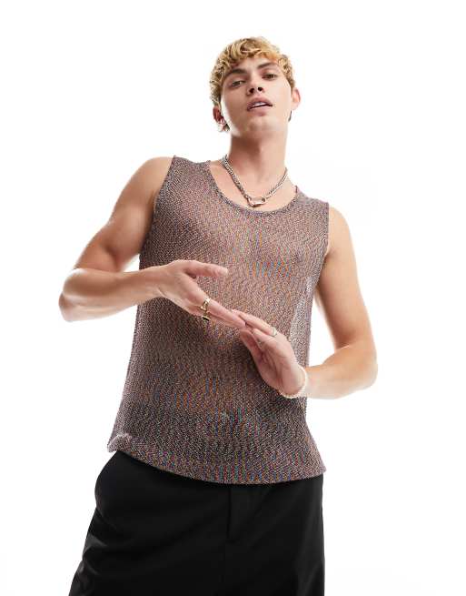 ASOS DESIGN - Gebreid hemd van metallic mesh in multi