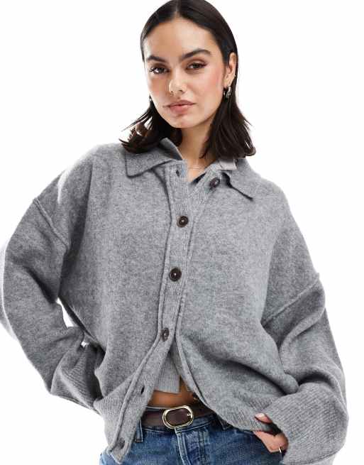 ASOS DESIGN - Gebreid overhemdvest met kraag en naaddetail in grijs