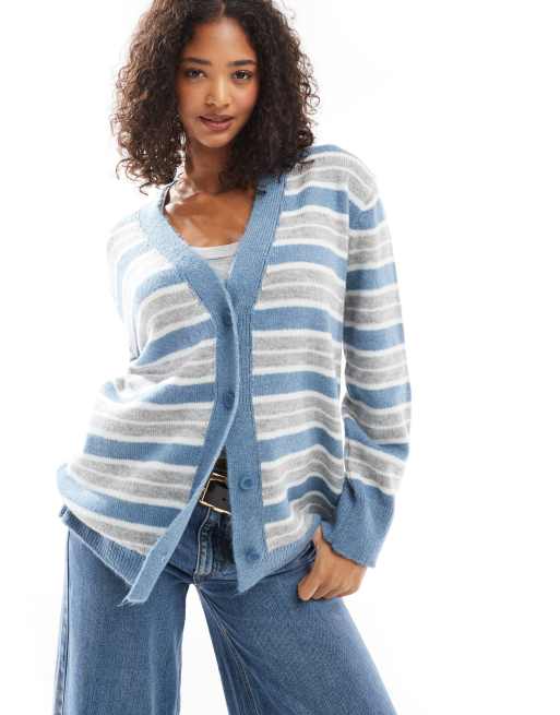 ASOS DESIGN - Gebreid oversized recht vest met strepen in marineblauw en grijs