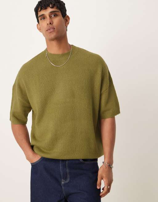 ASOS DESIGN - Gebreid oversized T-shirt in kaki