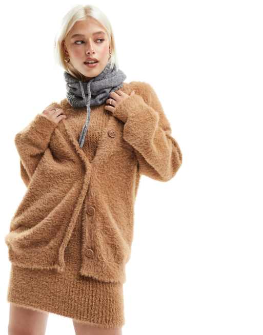 ASOS DESIGN - Gebreid pluizig vest in camel, deel van co-ord set