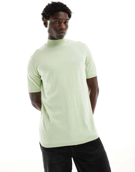 ASOS DESIGN - Gebreid T-shirt van lichtgewicht katoen met col in saliegroen