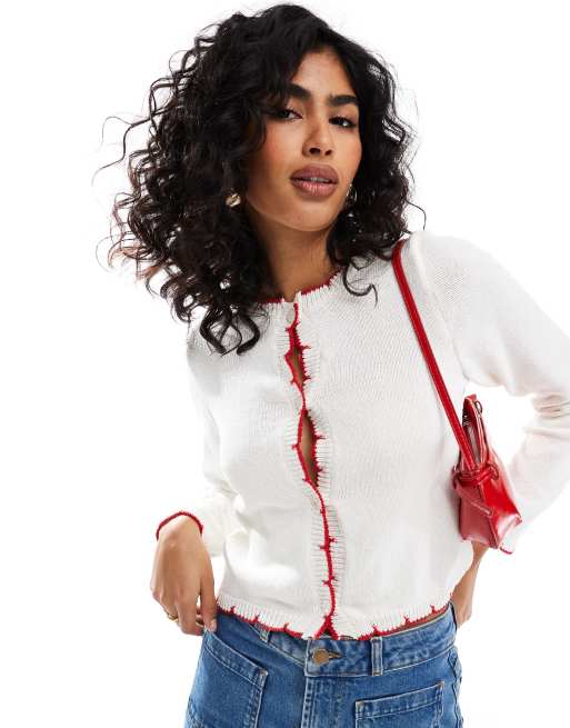 ASOS DESIGN - Gebreid vest met festonsteek in ivoorwit
