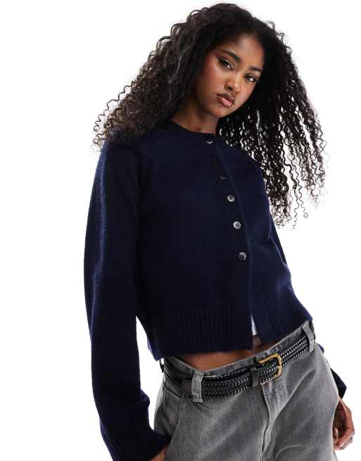 ASOS DESIGN - Gebreid vest met ronde hals, contrasterende knopen en split aan de zoom in marineblauw
