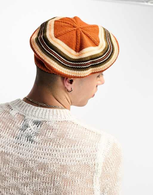 ASOS DESIGN - Gebreide baret met strepen in roestbruin