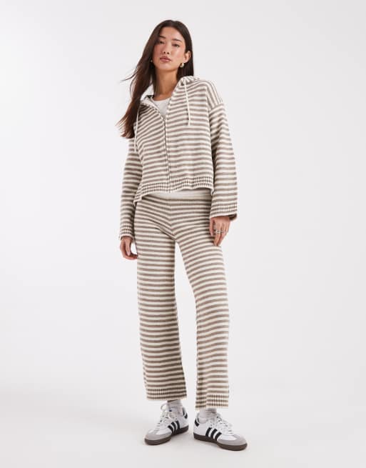 ASOS DESIGN - Gebreide broek met strepen en wijde pijpen, deel van co-ord set