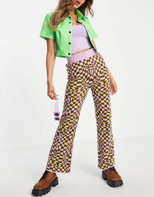 ASOS DESIGN - Gebreide broek met vervormd ruitmotief, deel van co-ord set