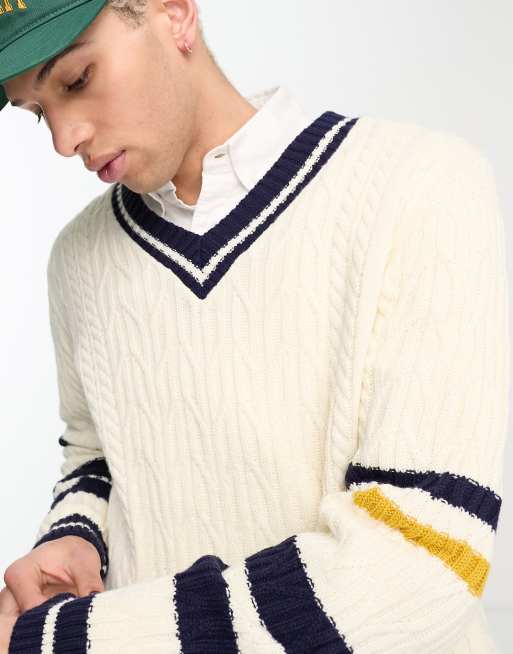 ASOS DESIGN - Gebreide cricket-trui met veelkleurige strepen in beige
