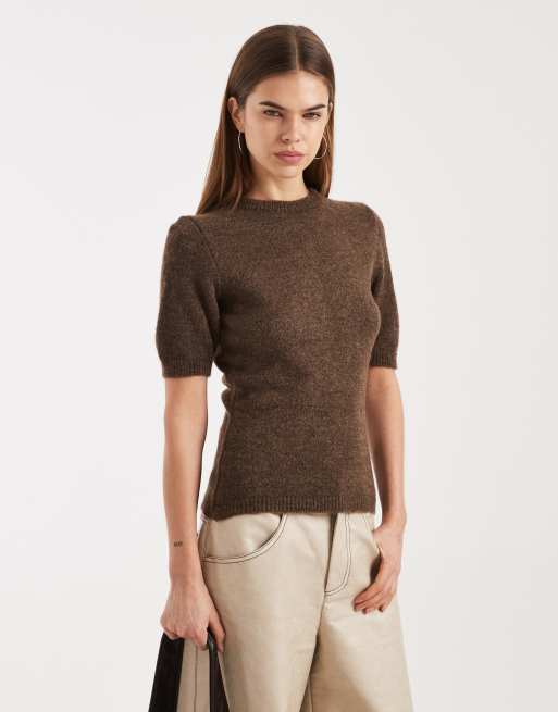 ASOS DESIGN - Gebreide gekrompen trui in bruin