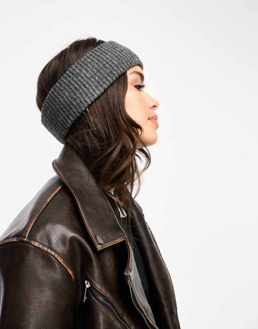 ASOS DESIGN - Gebreide, geribbelde hoofdband in antracietgrijs
