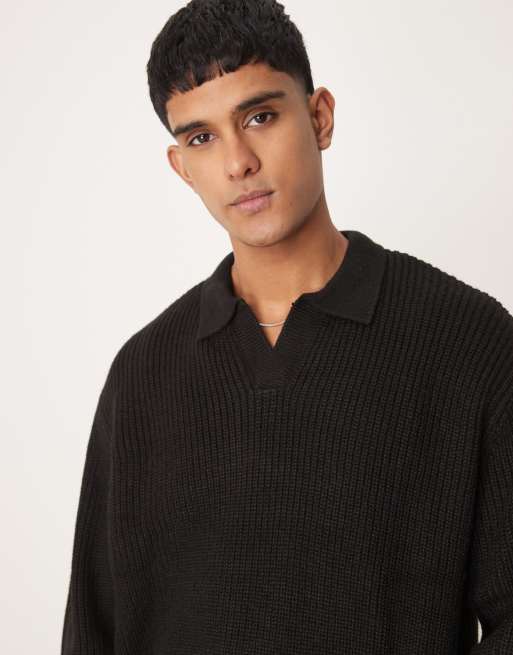 ASOS DESIGN - Gebreide geribbelde oversized trui met inkeping in de hals in zwart