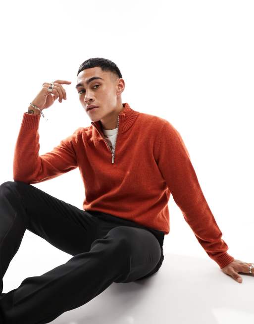 ASOS DESIGN - Gebreide lamswollen trui met 1/4 rits in oranje