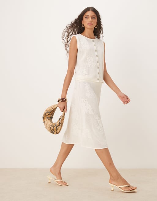 ASOS DESIGN - Gebreide midirok van kant in ecru, deel van co-ord set