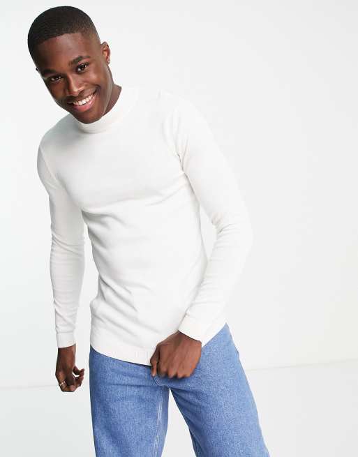 ASOS DESIGN - Gebreide muscle fit coltrui in wit
