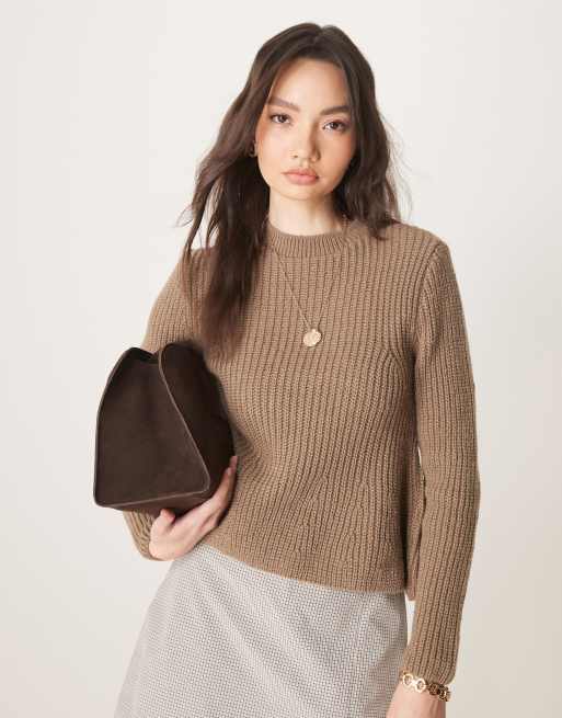 ASOS DESIGN - Gebreide peplumtop in mokka
