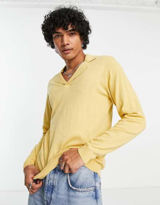 ASOS DESIGN - Gebreide polo-trui van katoen met reverskraag in geel