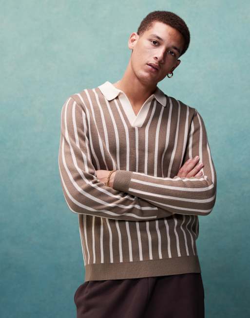 ASOS DESIGN - Gebreide polotrui met strepen in bruin