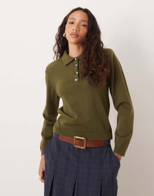 ASOS DESIGN - Gebreide rugbytop met schoudervullingen en nette pasvorm in kaki
