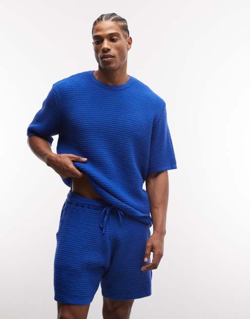 ASOS DESIGN - Gebreide short met textuur in blauw, deel van co-ord set