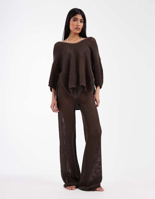 ASOS DESIGN - Gebreide strandbroek in chocoladebruin, deel van co-ord set